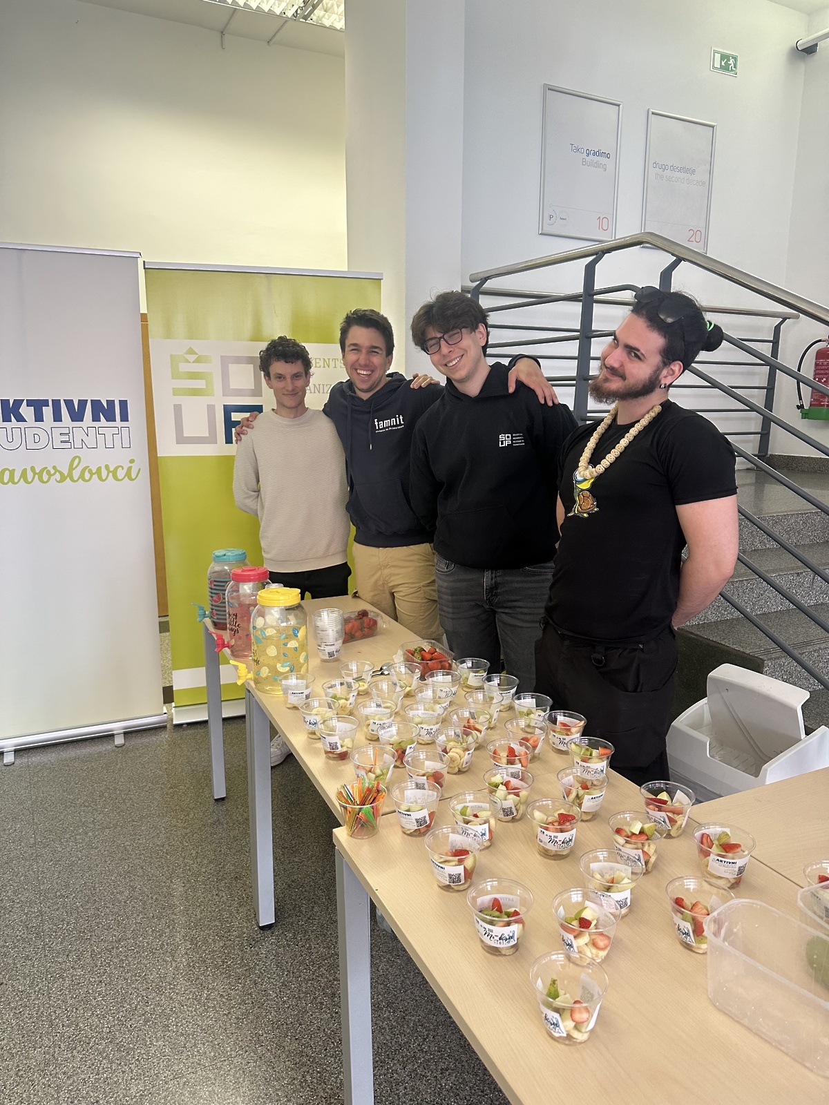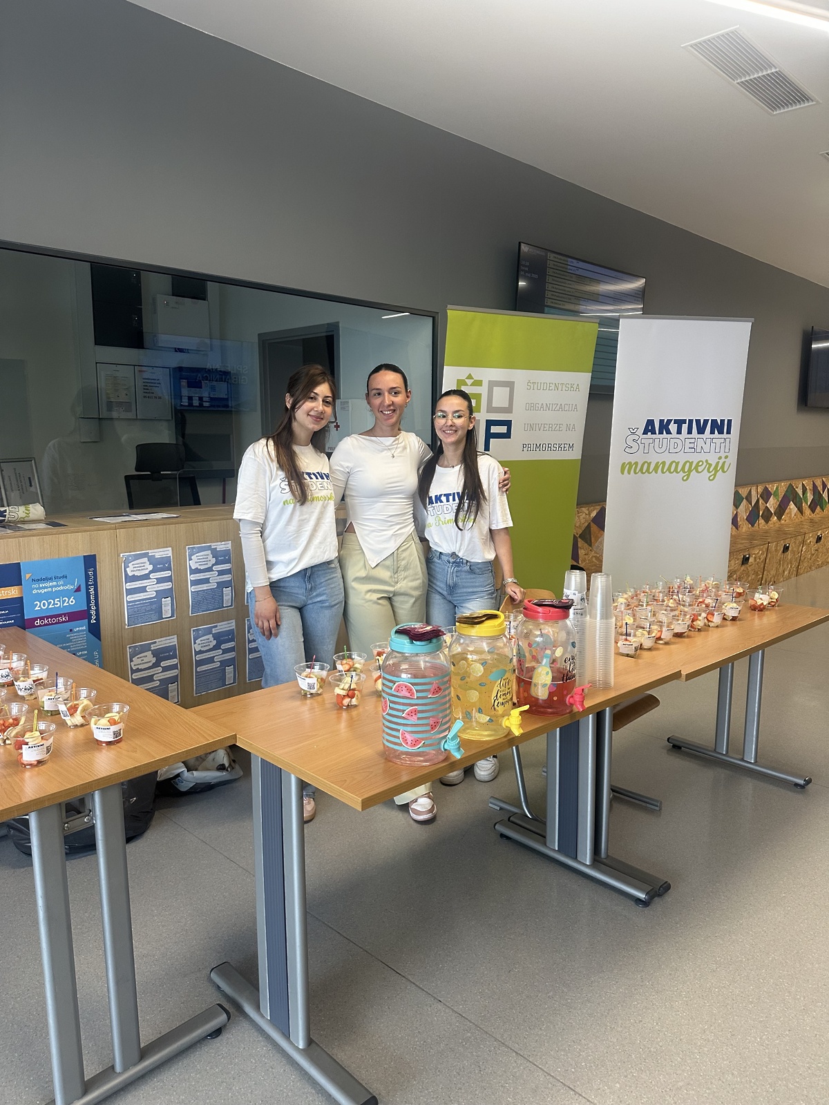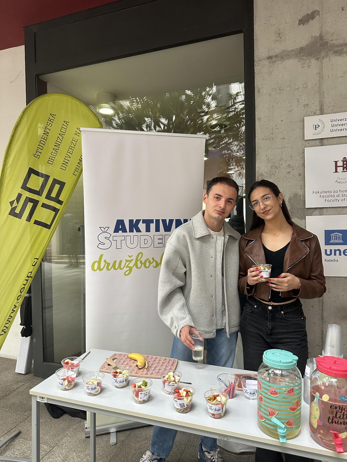 Študentska organizacija Univerze na Primorskem (ŠOUP) je v mesecu maju uspešno izvedla projekt ZDRAVI MAJ, s katerim je študentom in zaposlenim približala pomen zdravega načina življenja ter uravnoteženega prehranjevanja. Aktivnosti so potekale med 6. in 7. majem 2025 na vseh šestih fakultetah Univerze na Primorskem, kjer so bili udeležencem med 9.00 in 14.00 uro na voljo brezplačni zdravi napitki in prigrizki.