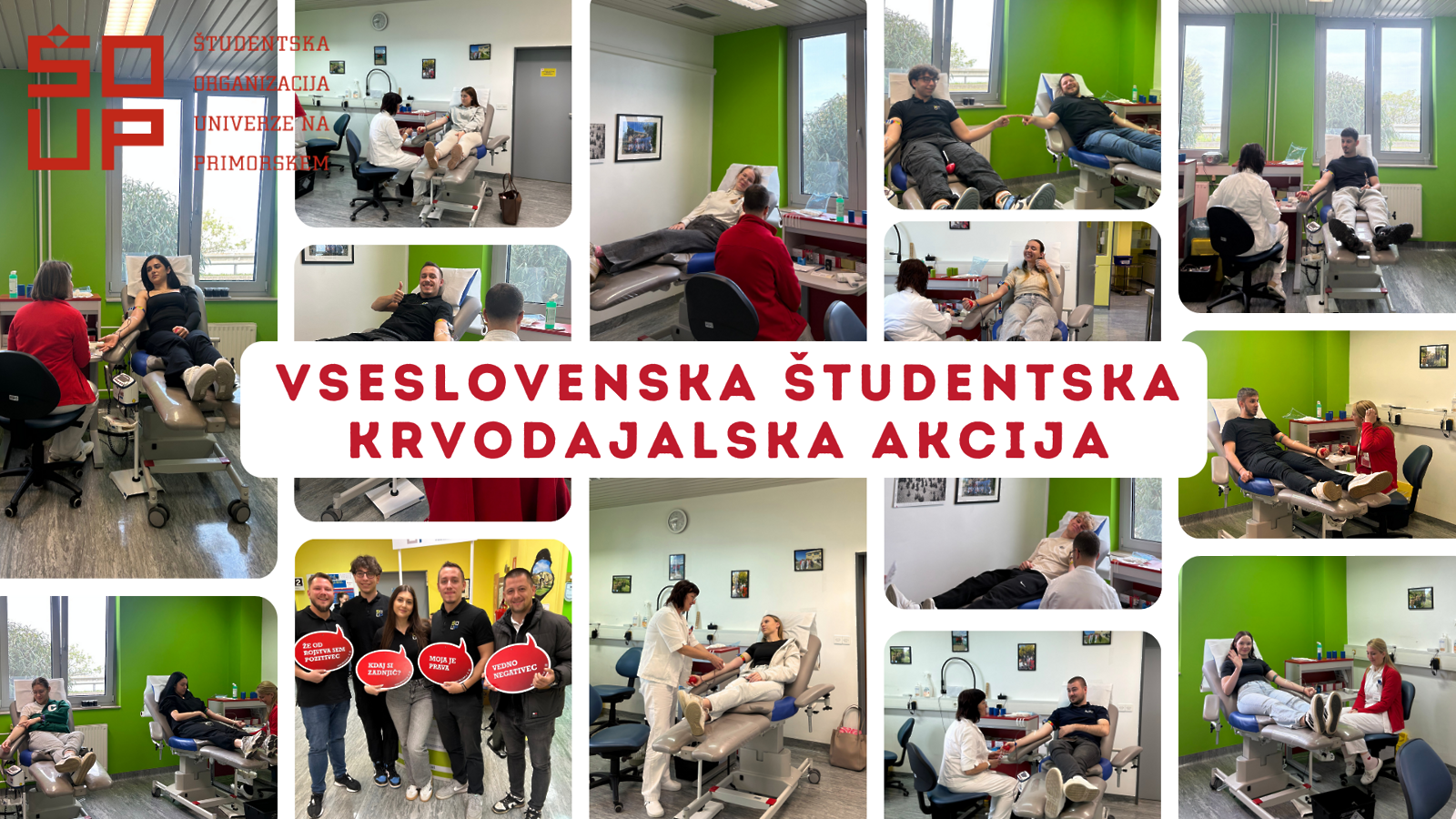 V soboto, 12. aprila, se je na Centru za transfuzijsko medicino v Izoli zaključila tradicionalna krvodajalska akcija »Častim 1/2 litra«, ki jo organizira Študentska organizacija Univerze na Primorskem (ŠOUP) v sodelovanju z Zavodom RS za transfuzijsko medicino. Tokrat se je plemeniti pobudi odzvalo 60 študentov, ki so s svojo darovano krvjo prispevali k reševanju življenj.