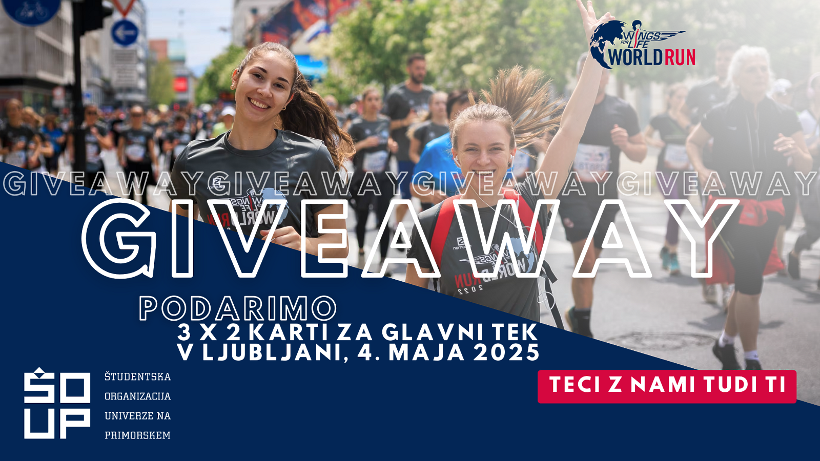 Z udeležbo na teku Wings for Life World Run počnete nekaj dobrega in pomagate priti do končnega cilja. 100 odstotkov vaših startnin in donacij je namenjenih raziskavam poškodbe hrbtenjače. To omogoča Red Bull, ki skupaj s partnerji krije vse administrativne stroške. Projekt Wings for Life podpira tudi Študentska organizacija Univerze na Primorskem (ŠOUP), ki bo brezplačno podelila kar 3 x 2 štartnini med študente Univerze na Primorskem. Če si želite tudi vi teči za dober namen, preverite Instagram profil @souprimorska, na katerem lahko sodelujete v nagradni igri in pridobite brezplačno štartnino zase in svojega prijatelja.