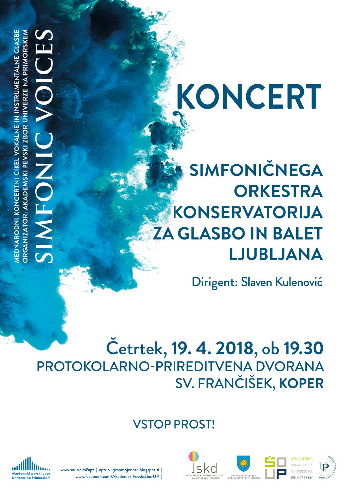 Akademski pevski zbor Univerze na Primorskem (APZ UP), ki deluje pod okriljem Študentske organizacije Univerze na Primorskem (ŠOUP), vabi na instrumentalni koncert mednarodnega cikla vokalne in instrumentalne glasbe Simfonic voices.